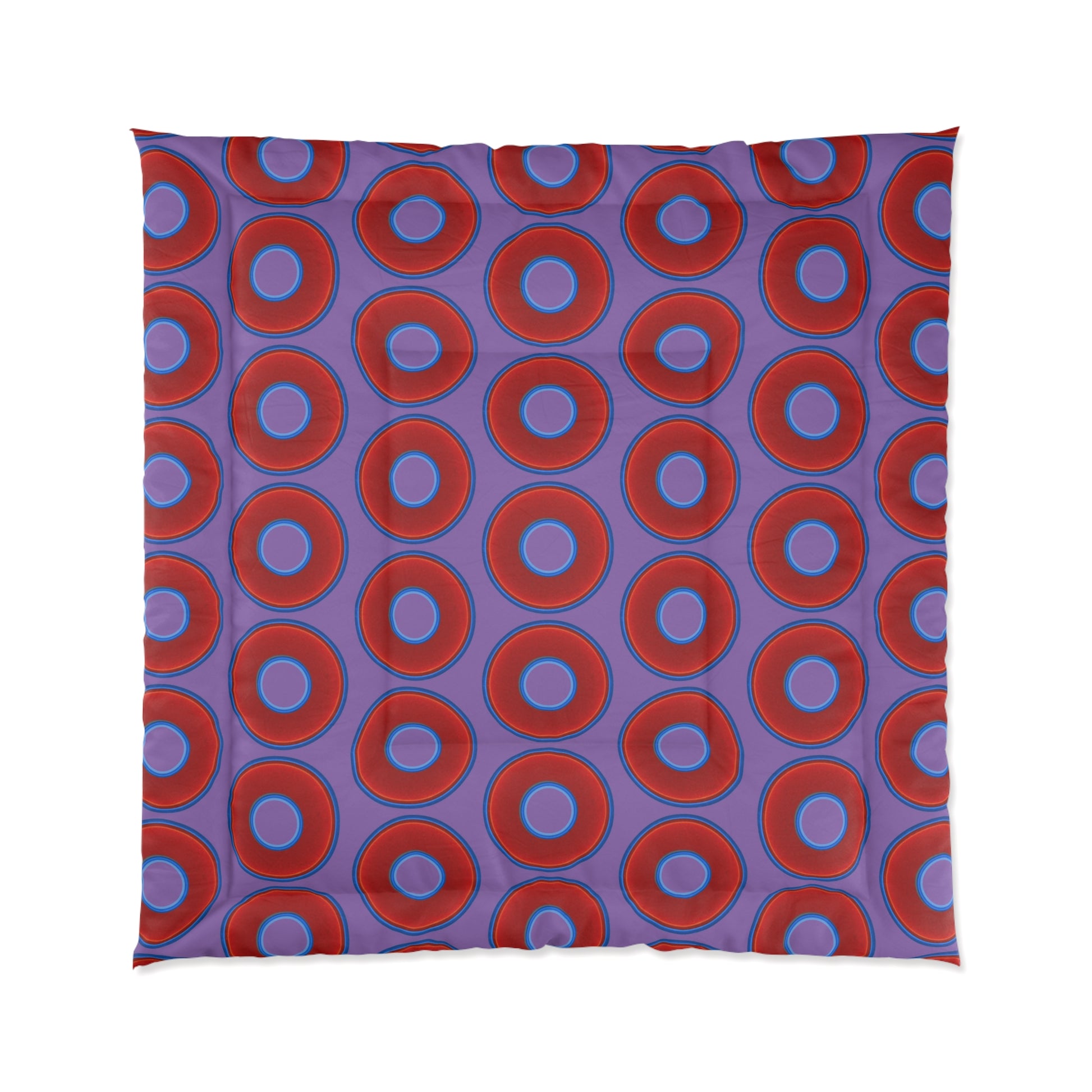 The Very Lumpy Comforter - vivid red donuts w/light purple background