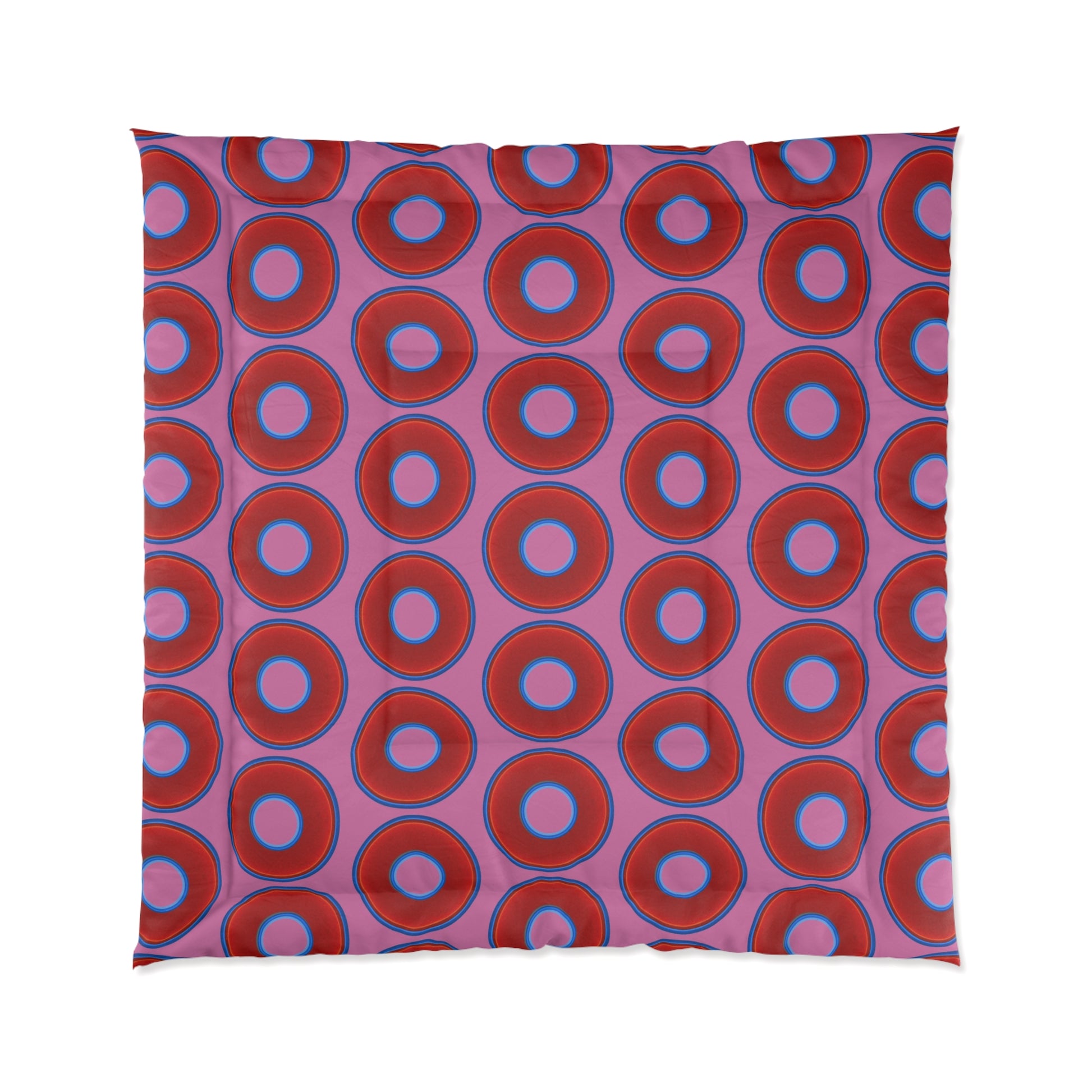 The Very Lumpy Comforter - vivid red donuts w/pink background