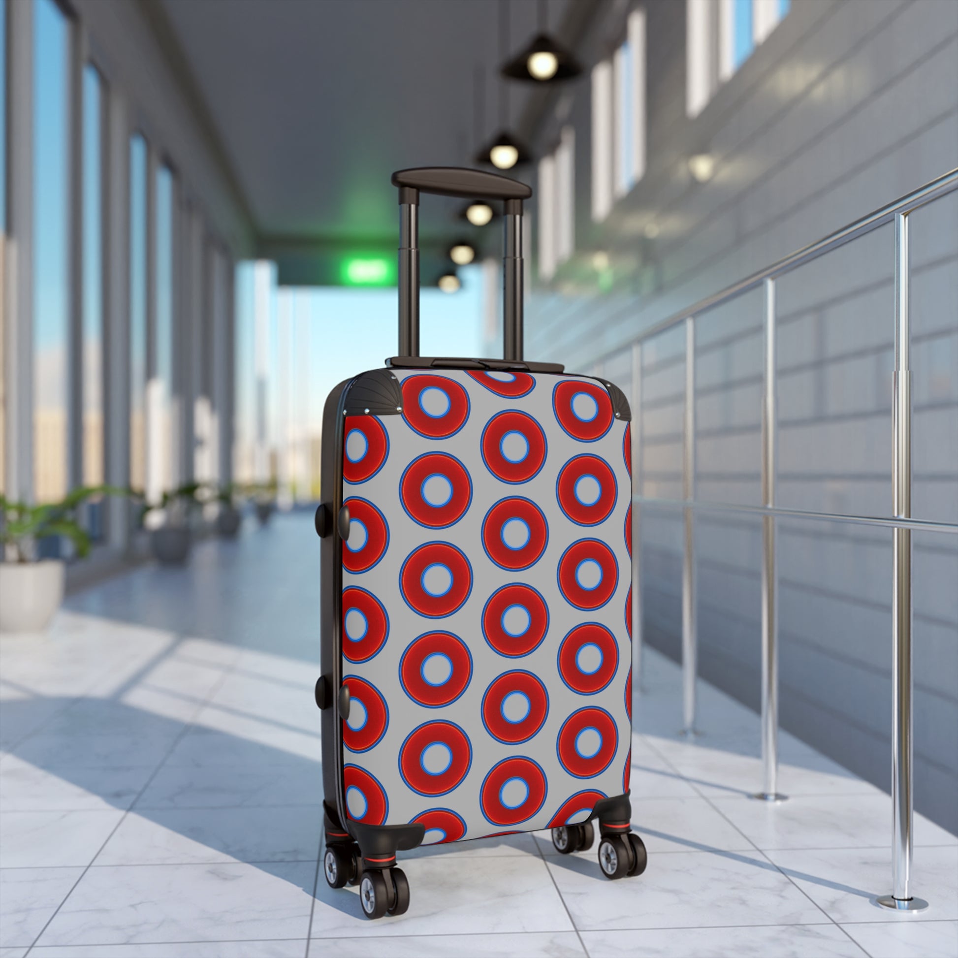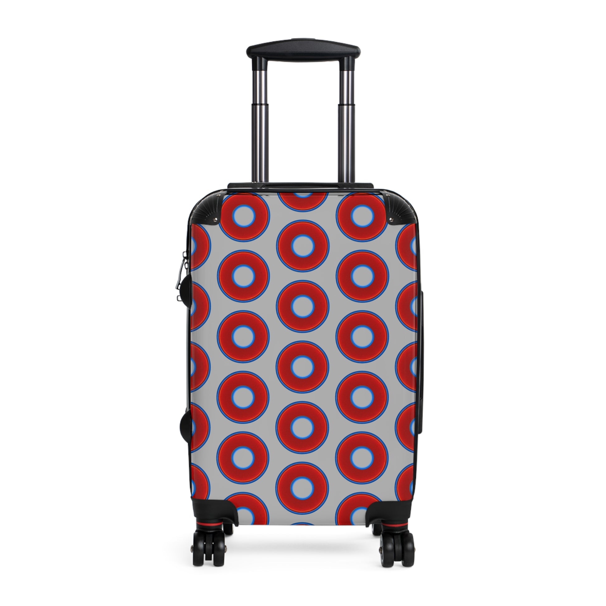 The Very Lumpy Donut Suitcase series - your choice of S, M or L - vivid red donut print w/light gray background