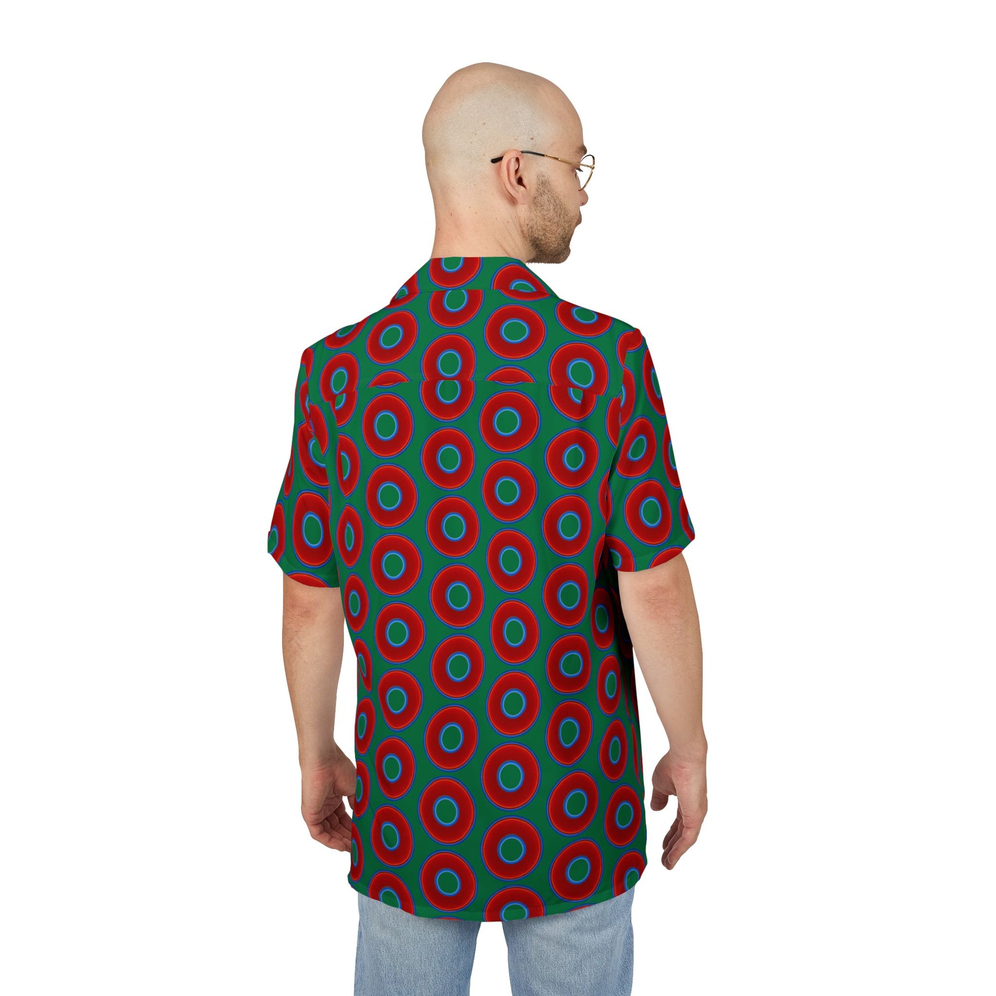 Wilson's 'Epic Hawaiian-Punch' Shirt - vivid red donut print w/green background [unisex]