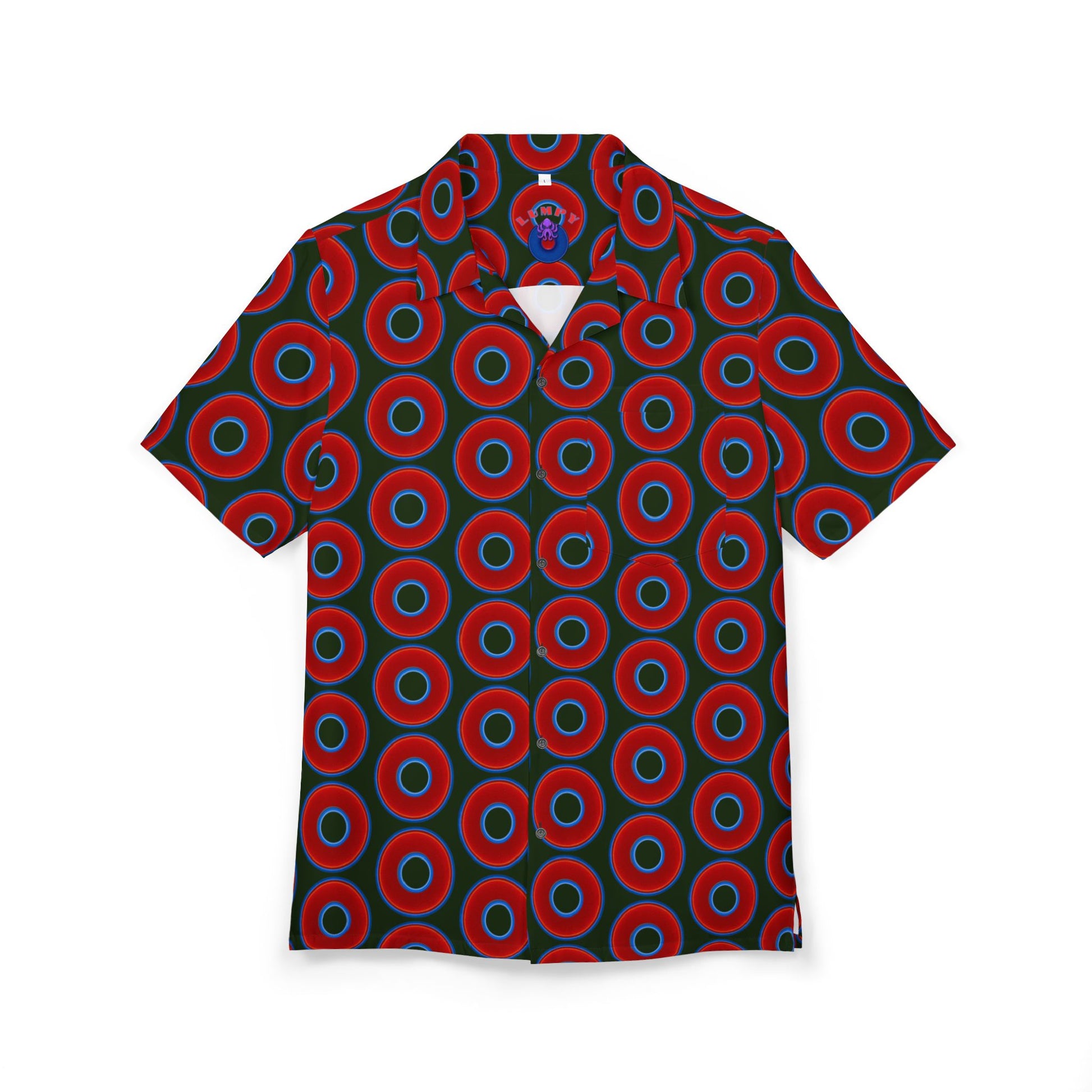 Wilson's 'Epic Hawaiian-Punch' Shirt - vivid red donut print w/deep forest green background [unisex]