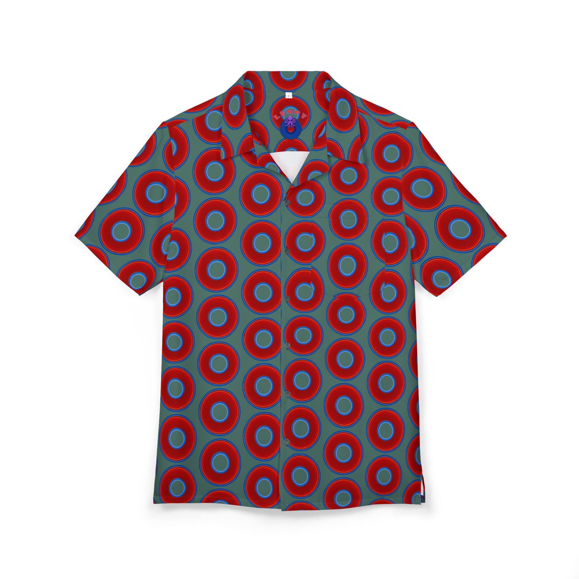 Wilson's 'Epic Hawaiian-Punch' Shirt - vivid red donut print w/Fenway green background [unisex]