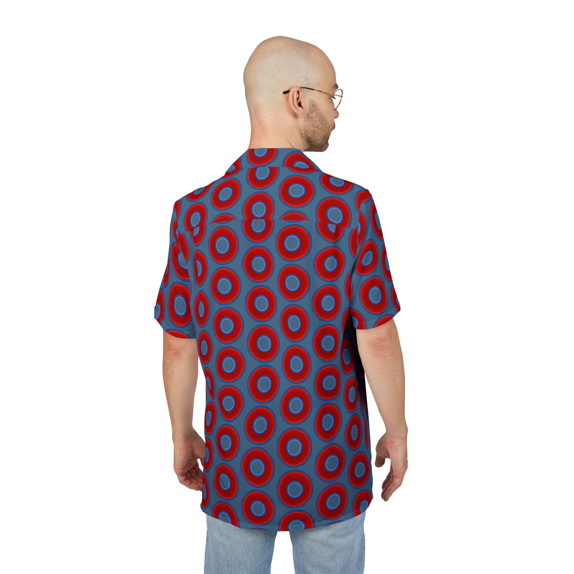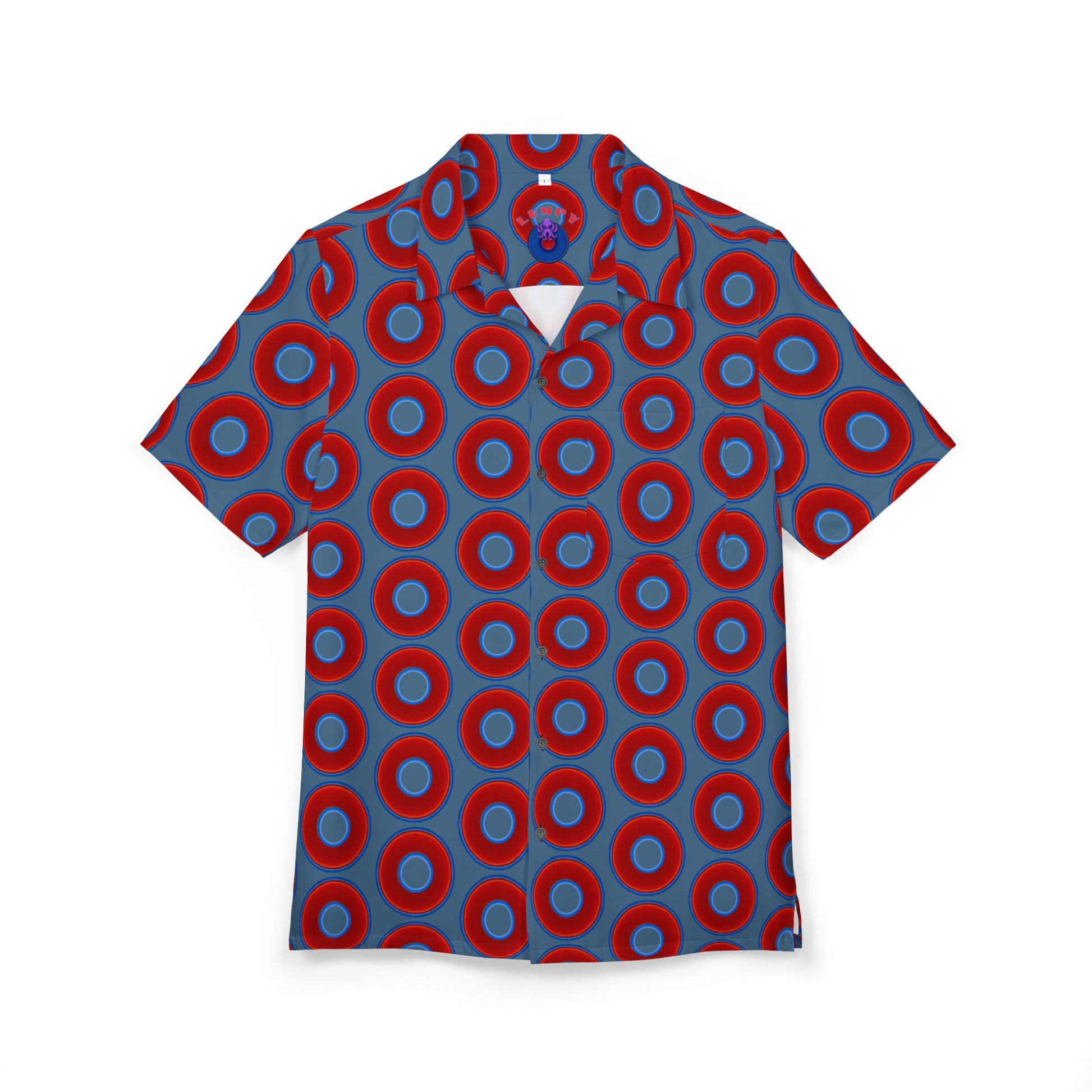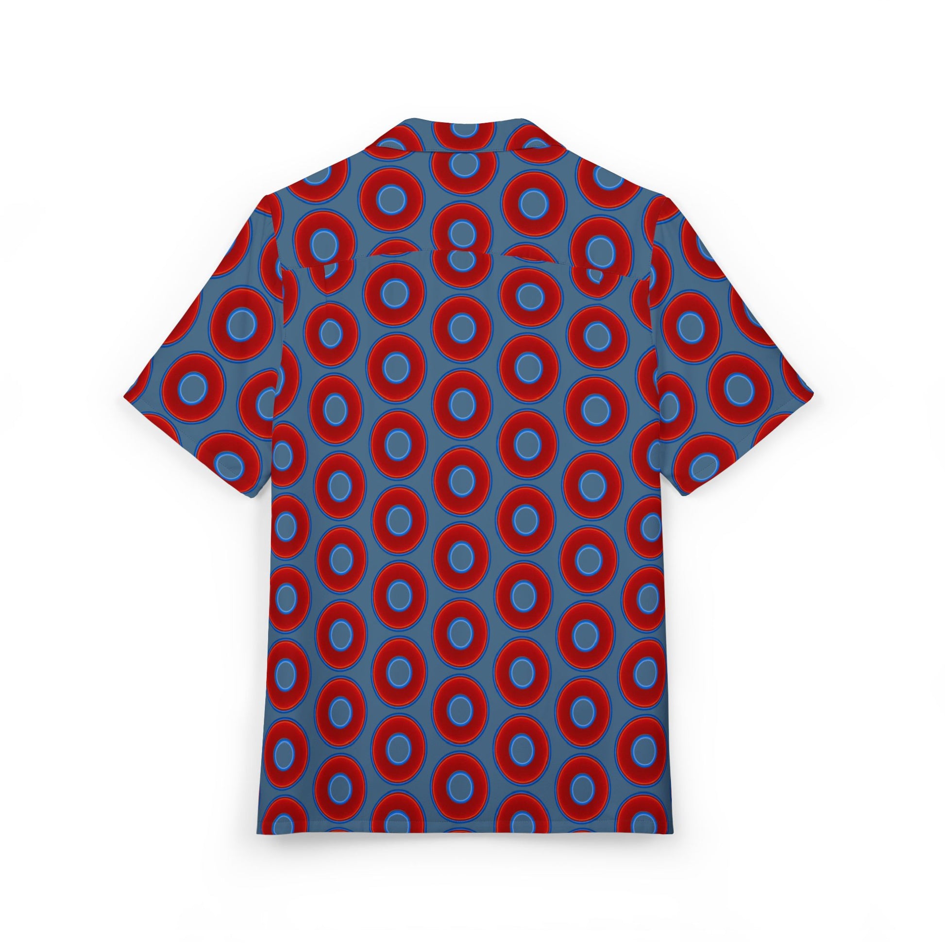 Wilson's 'Epic Hawaiian-Punch' Shirt - vivid red donut print w/steel blue background [unisex]