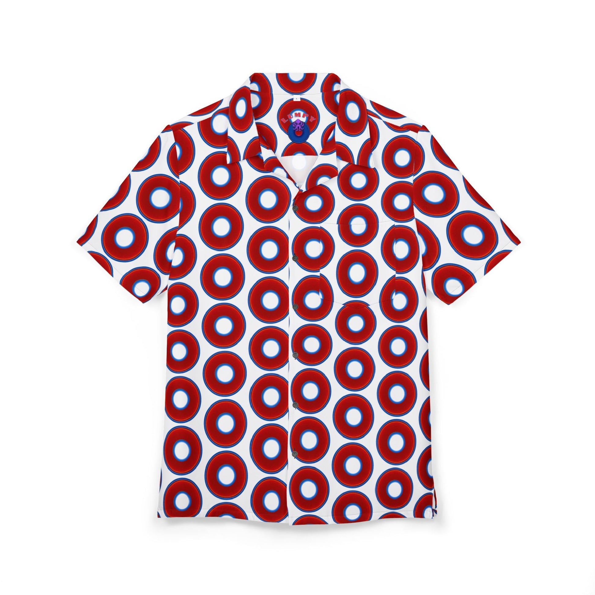 Wilson's 'Epic Hawaiian-Punch' Shirt - vivid red donut print w/white background [unisex]