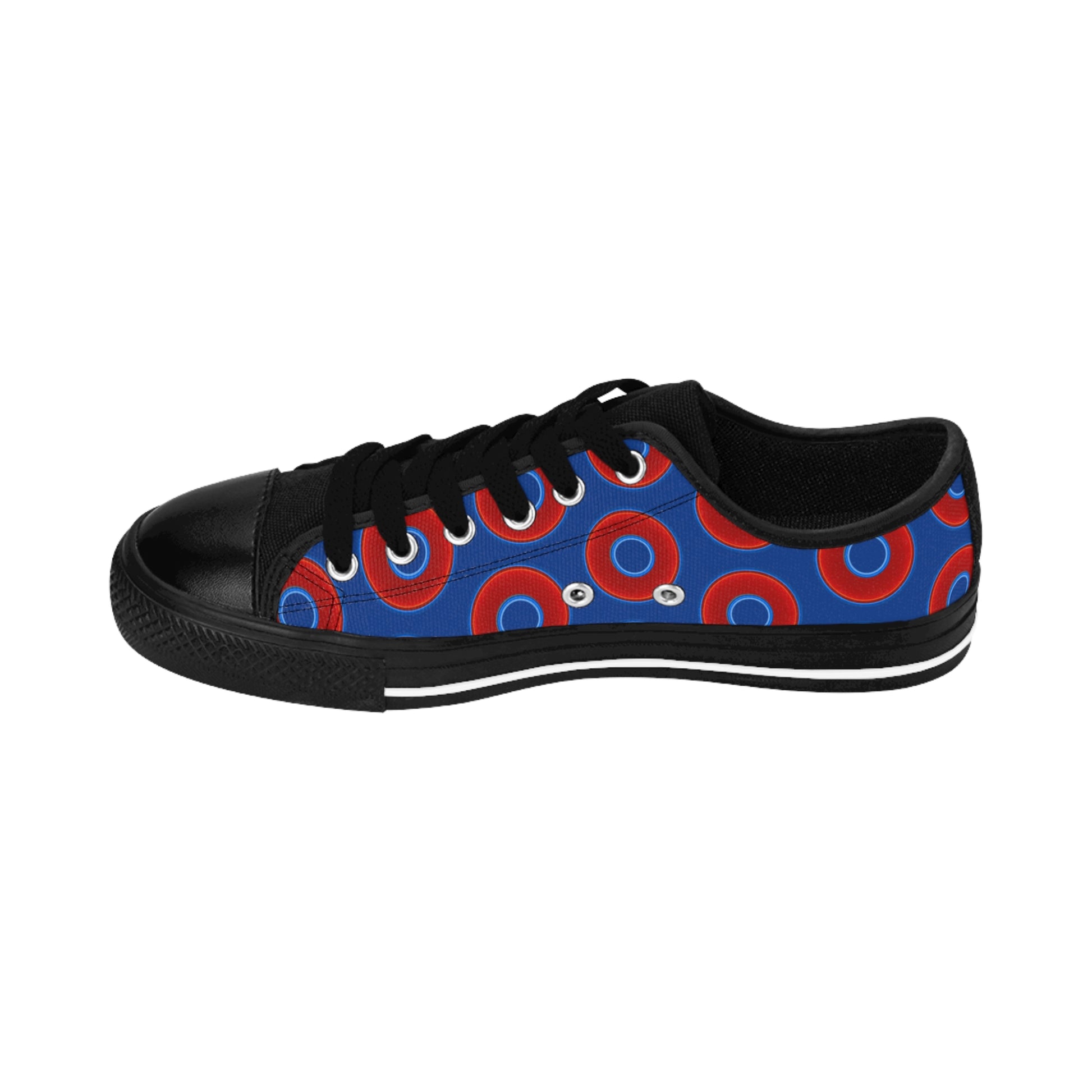 Women's Cushiony Convectors - Low Top - large red vivid donut print w/dark blue background