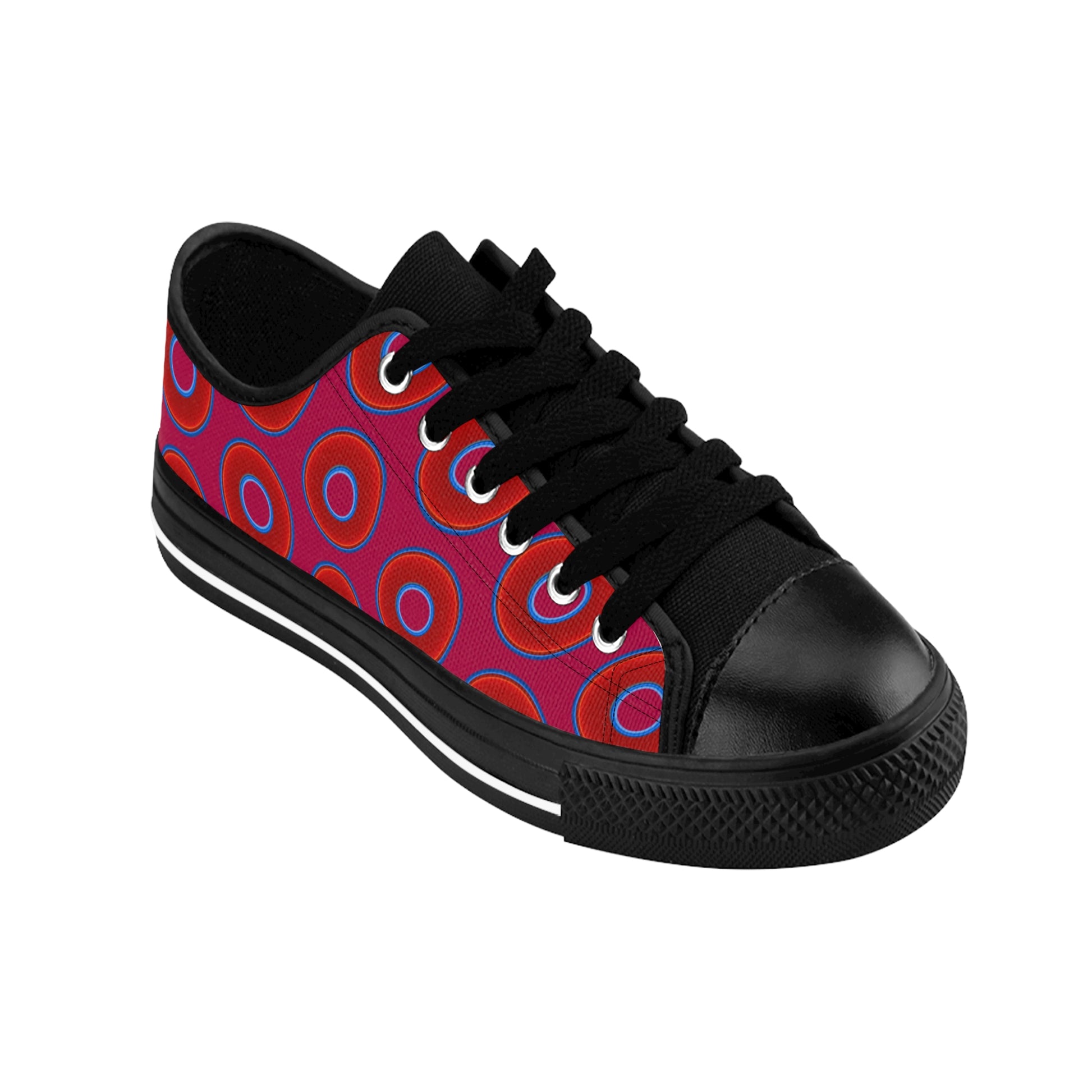 Women's Cushiony Convectors - Low Top - large red vivid donut print w/dark magenta background