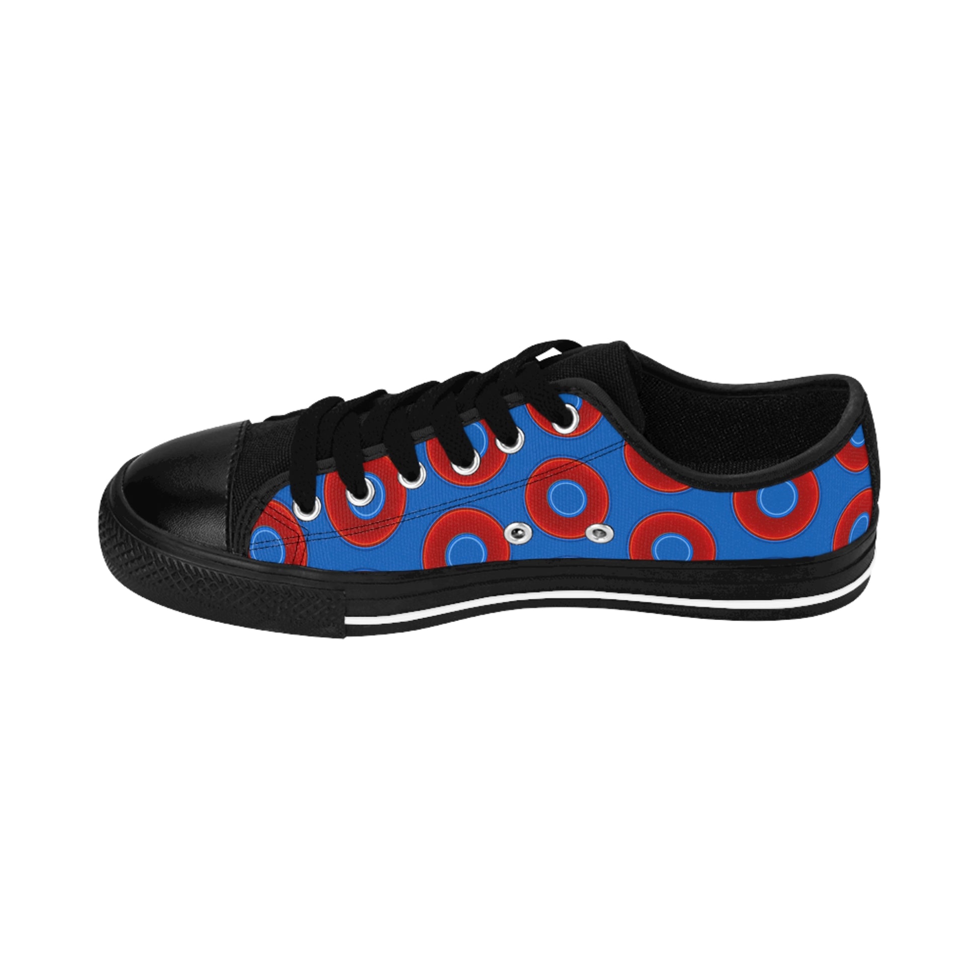 Women's Cushiony Convectors - Low Top - large red vivid donut print w/dark royal blue background