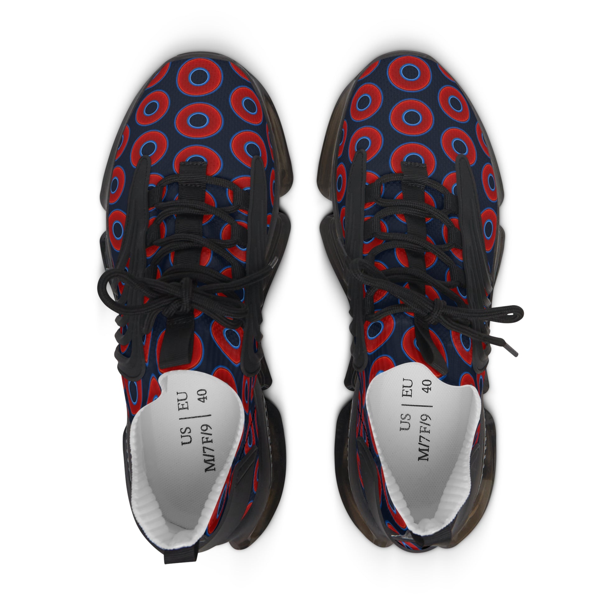 Women's Donut Kicks - red vivid donut print w/dark teal elite blue background