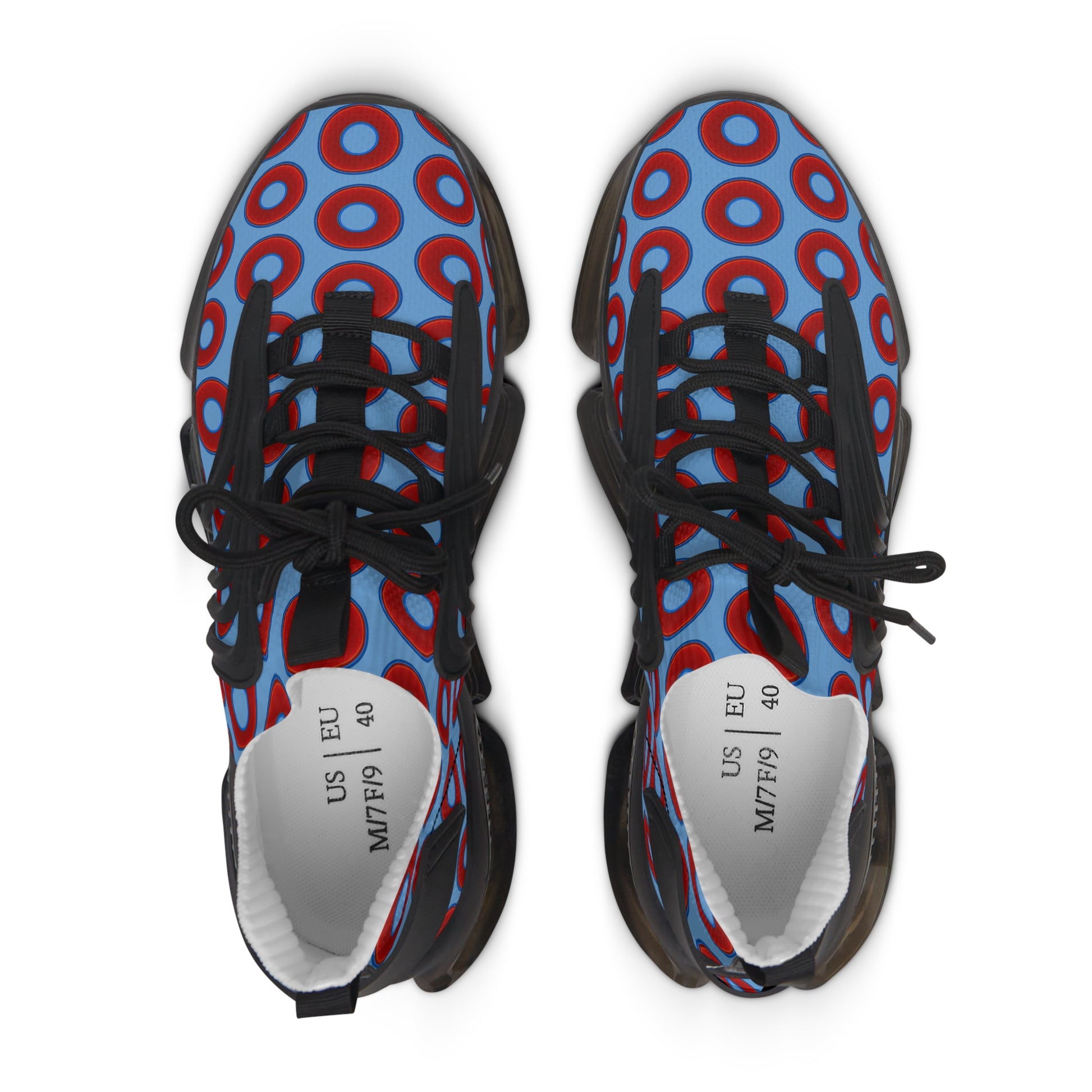 Women's Donut Kicks - red vivid donut print w/light blue background