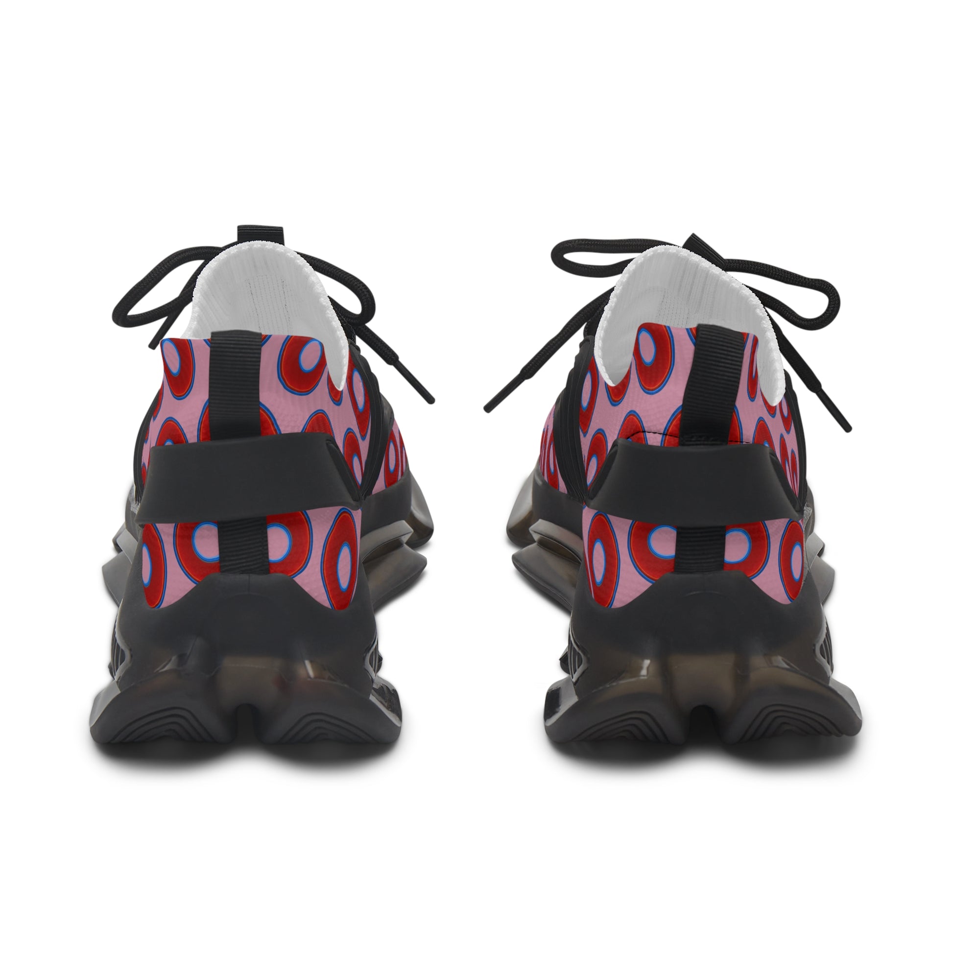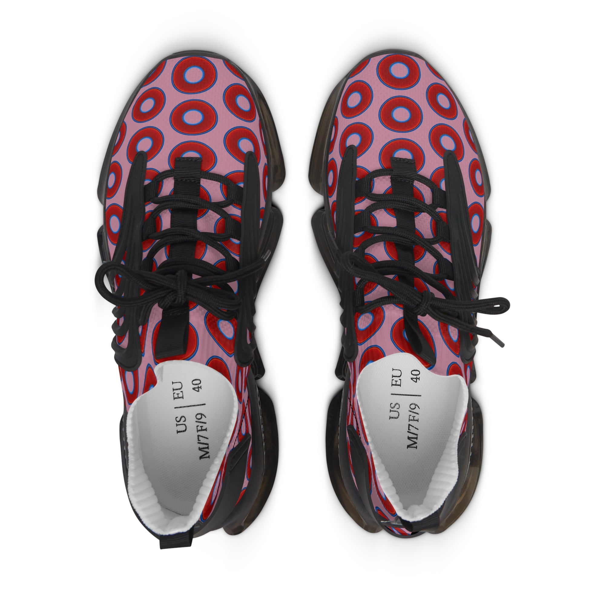 Women's Donut Kicks - red vivid donut print w/pale magenta background