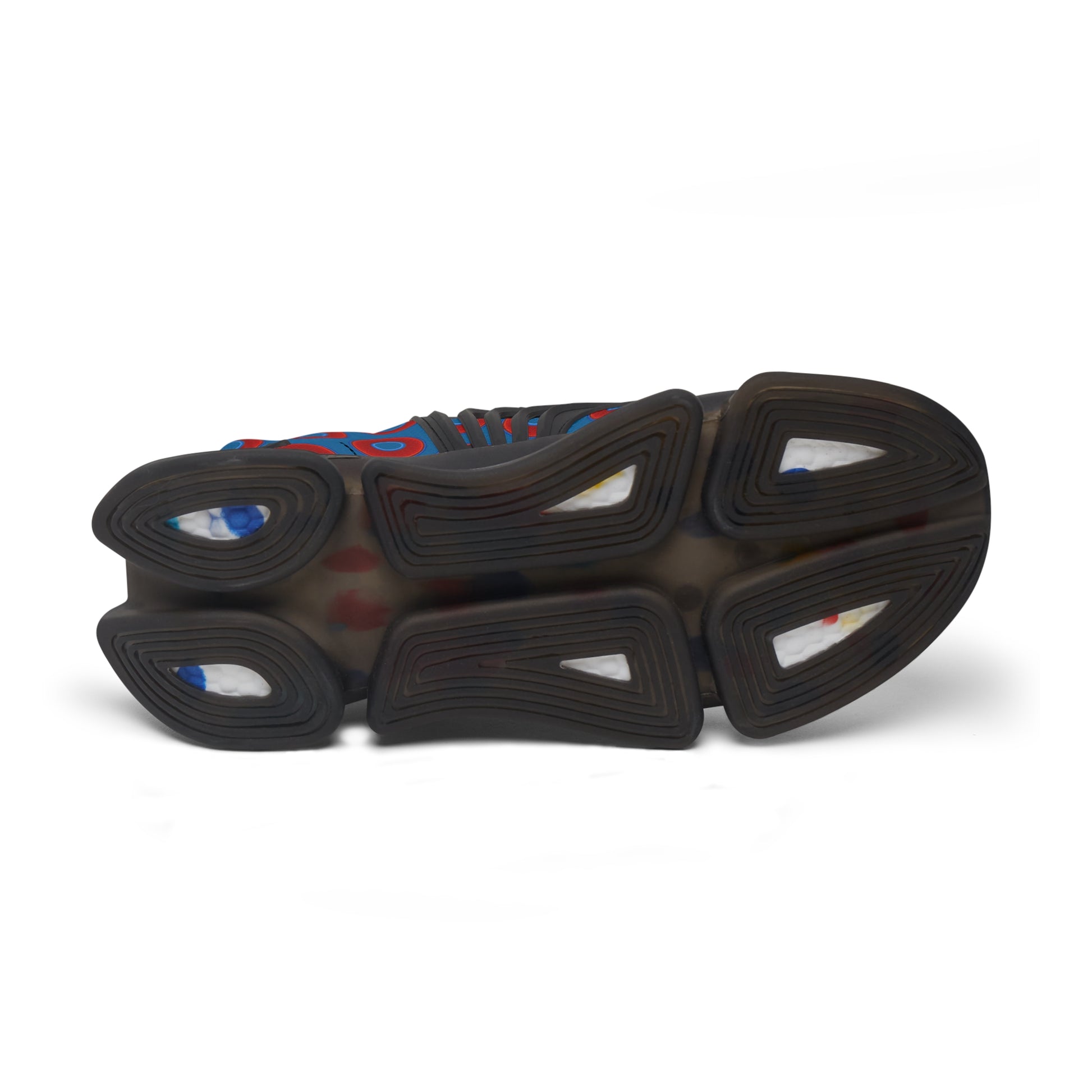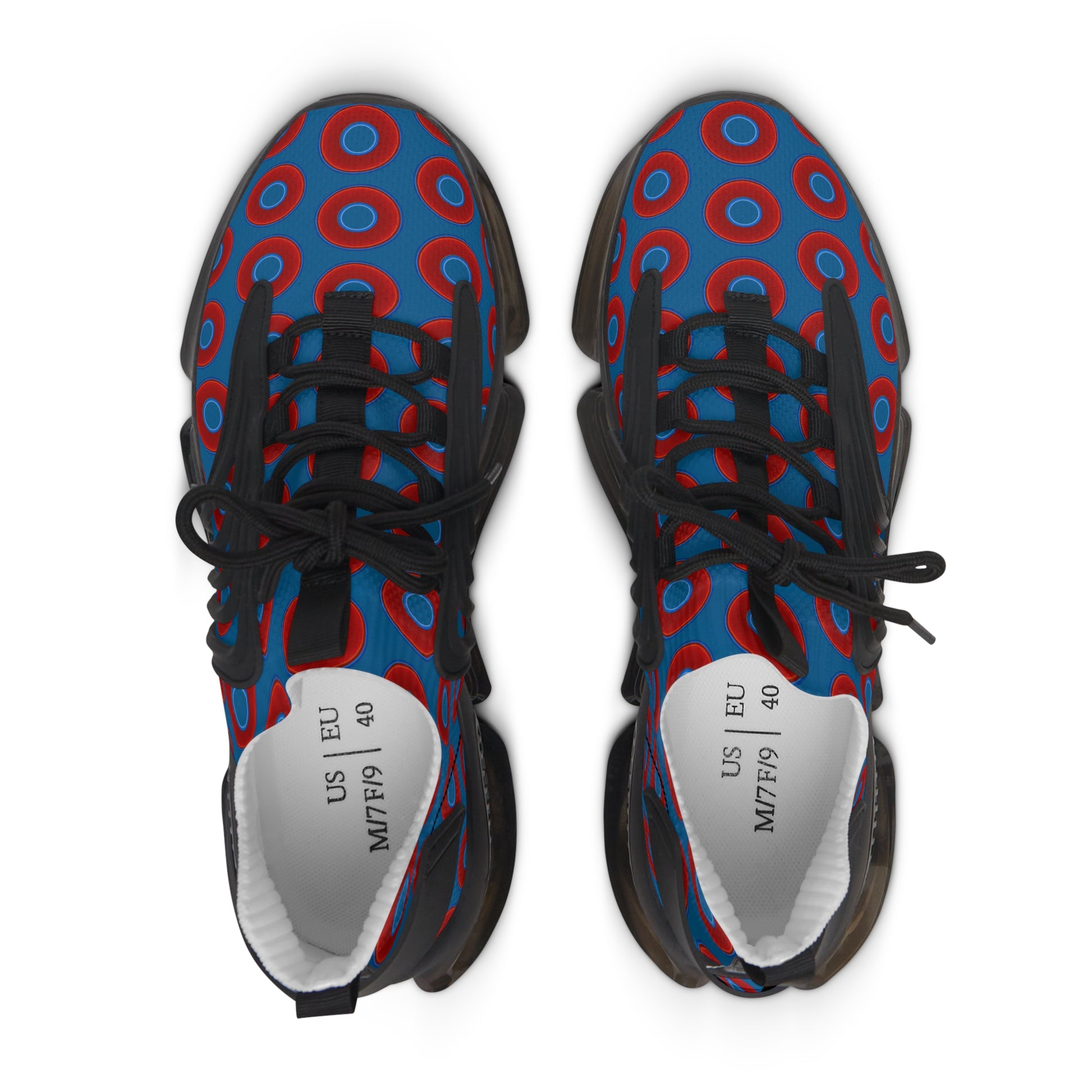 Women's Donut Kicks - red vivid donut print w/wavy navy blue background
