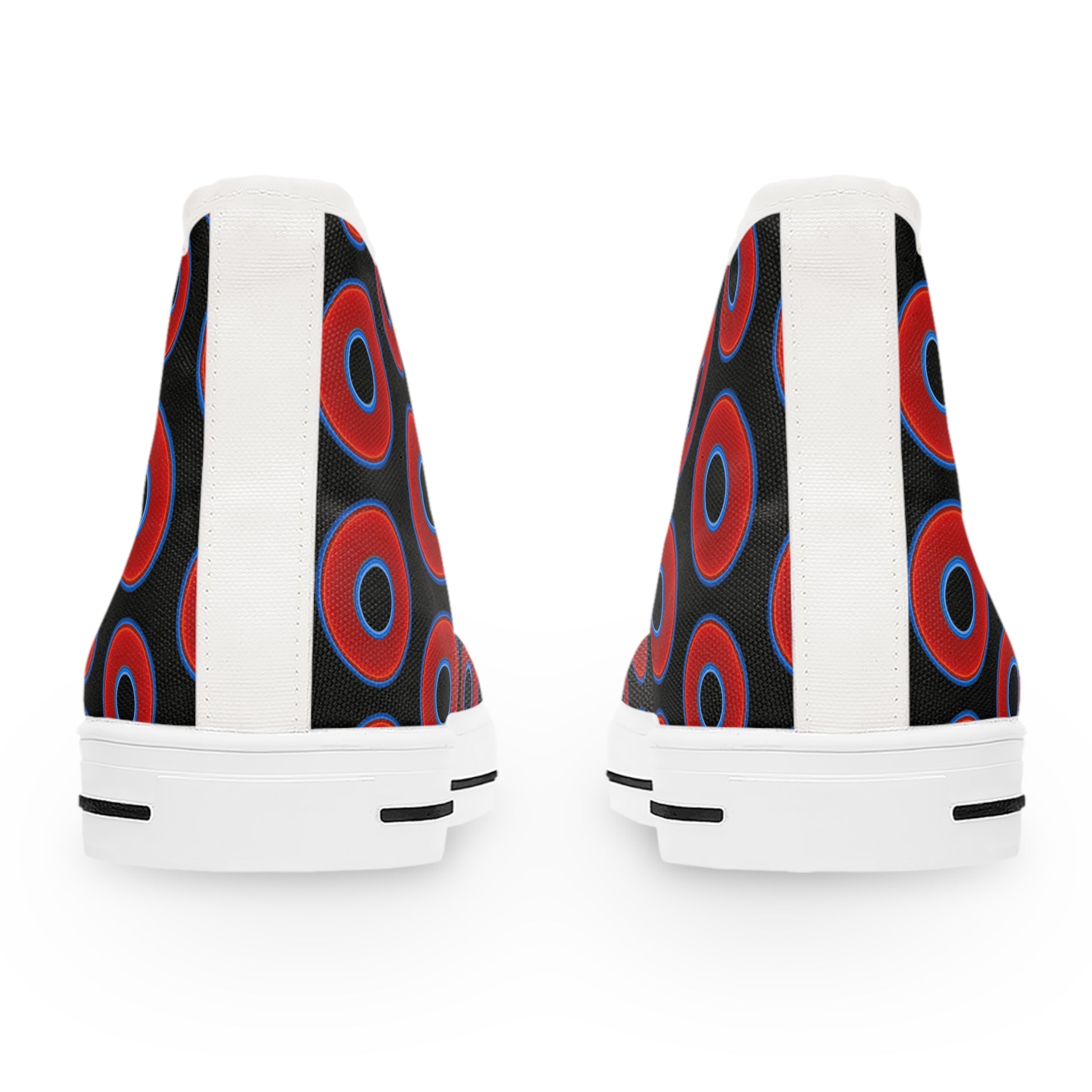 Women's High Top Chuck Taylors - large vivid red donut print w/black background