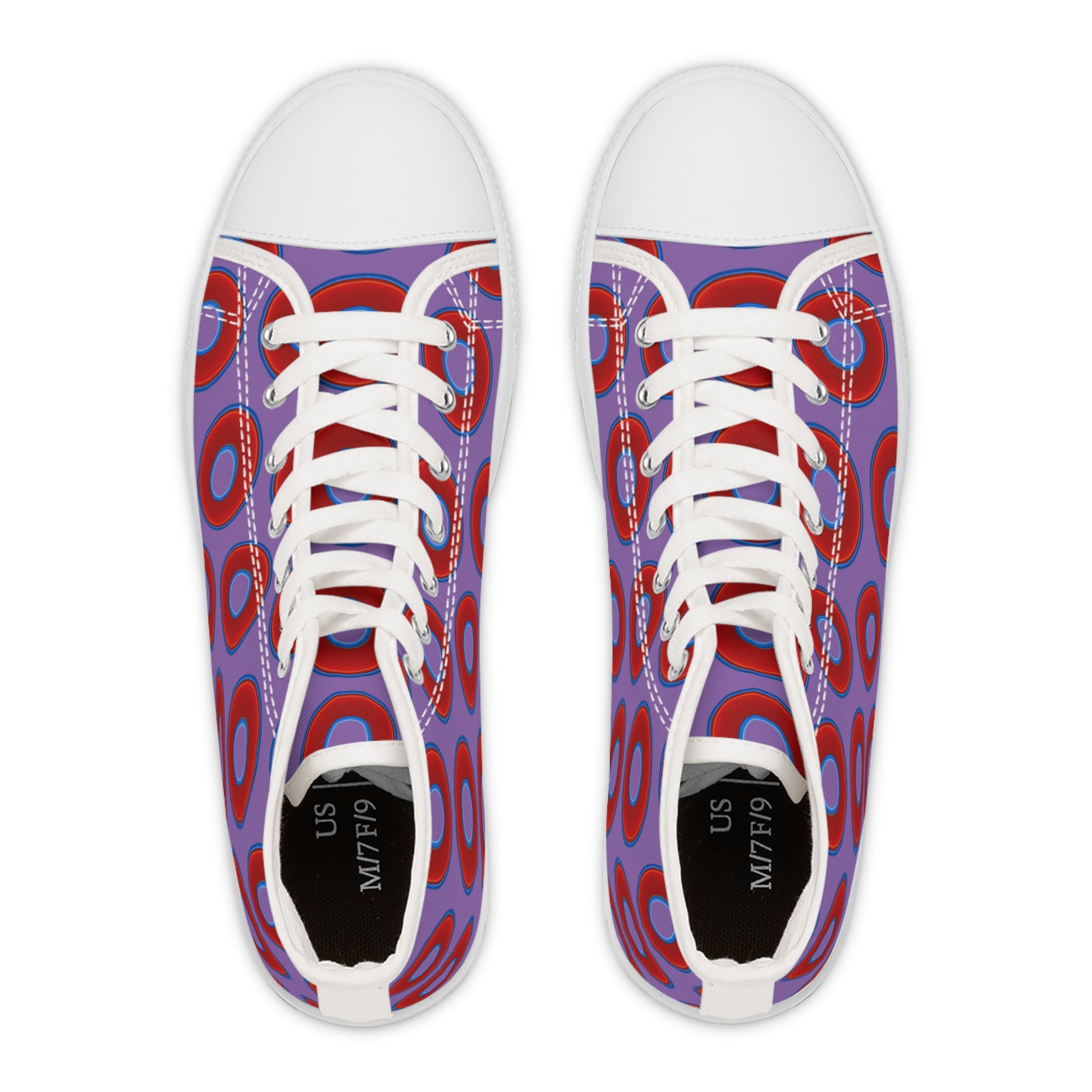 Women's High Top Chuck Taylors - large vivid red donut print w/light purple background