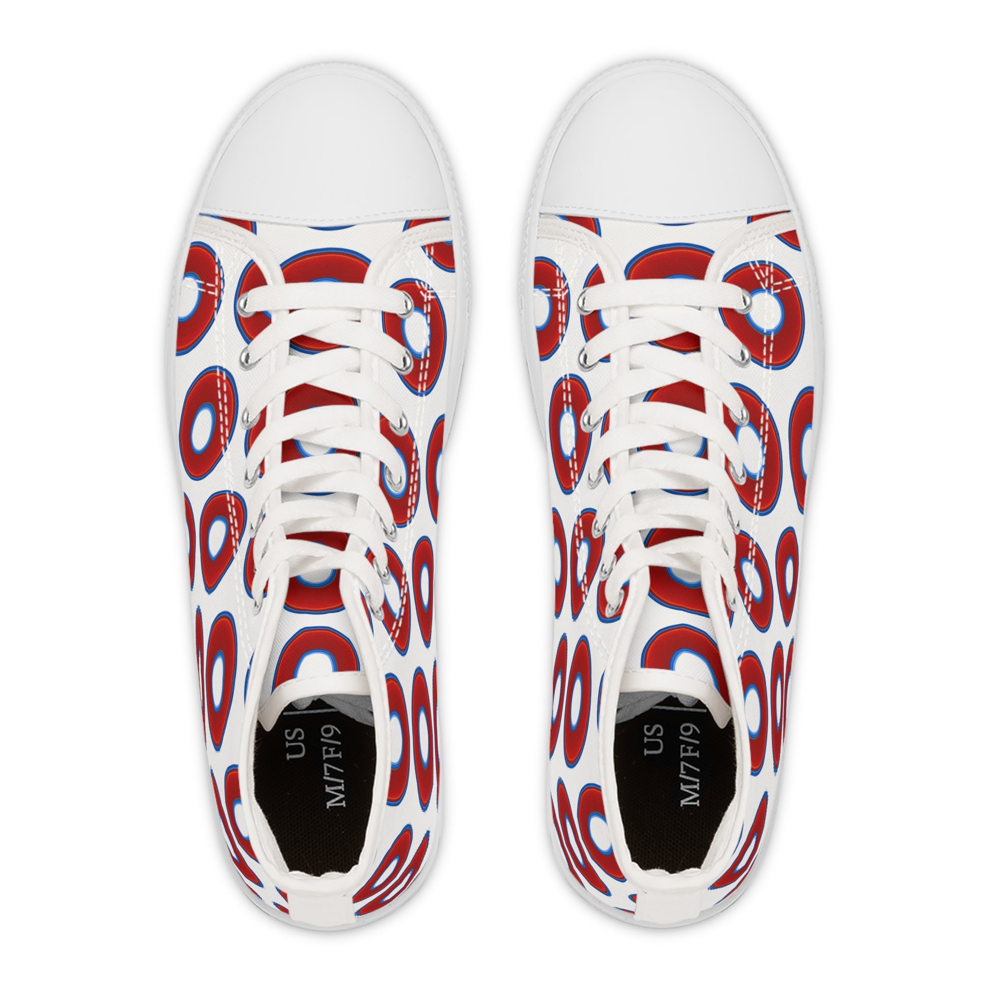 Women's High Top Chuck Taylors - large vivid red donut print w/white background