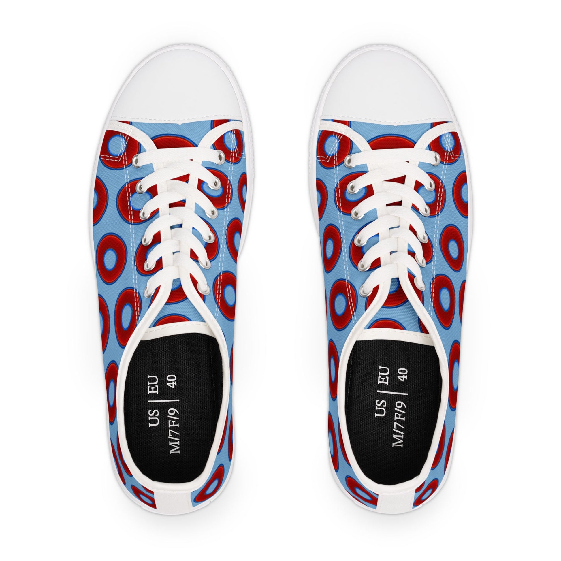 Women's - Low Top Chuck Taylors - large vivid red donut print w/sky blue background