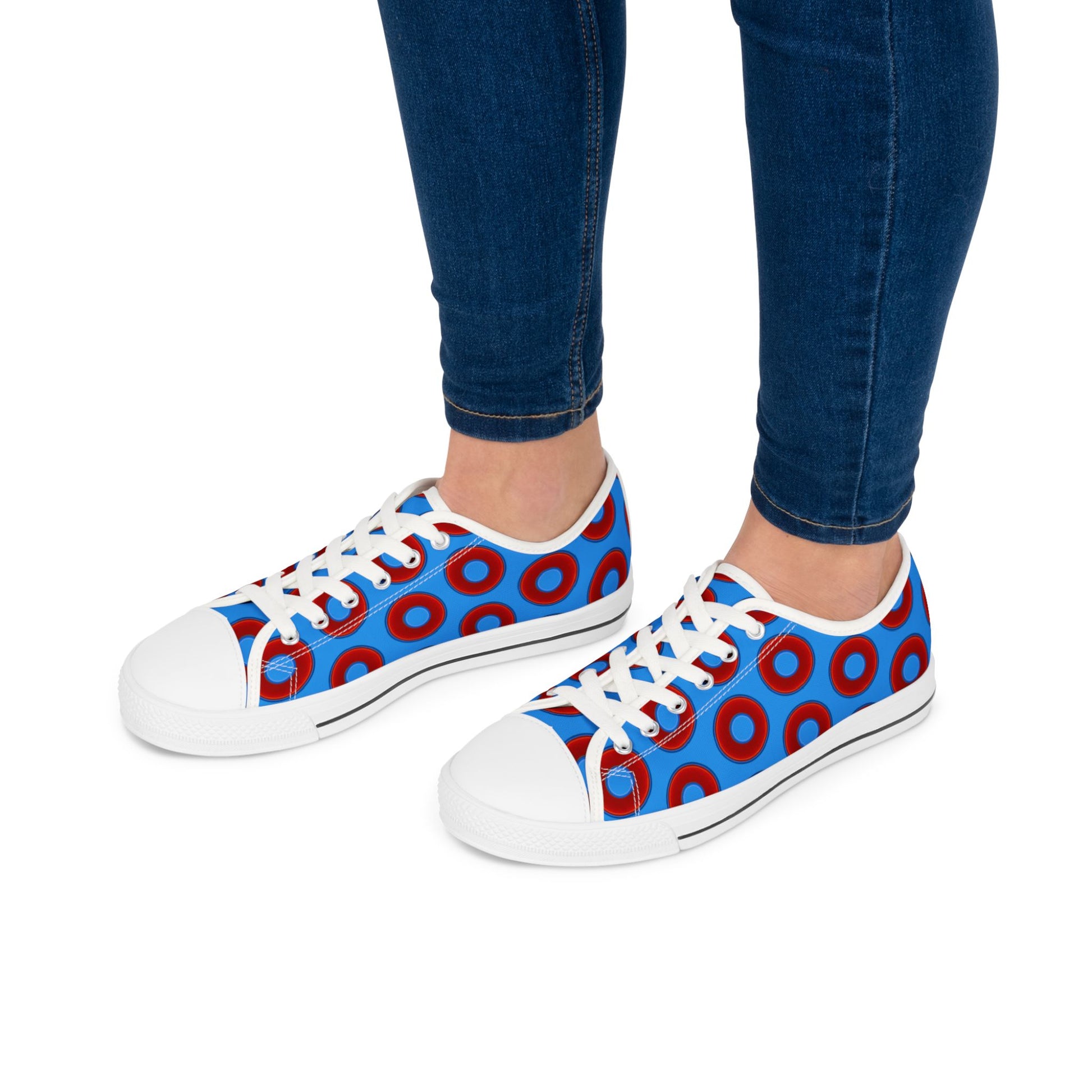 Women's - Low Top Chuck Taylors - large vivid red donut print w/sky royal blue background