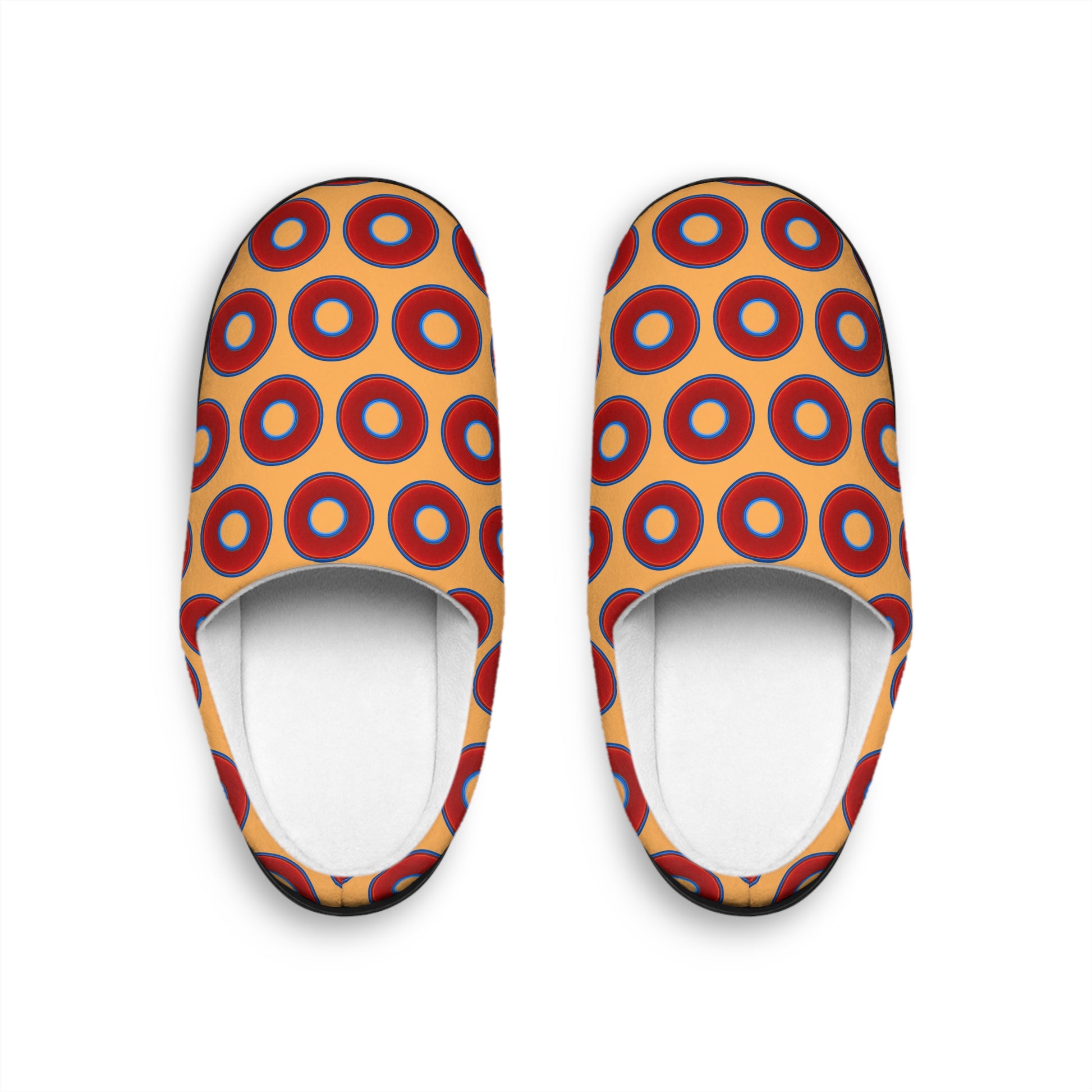 Women's Lumpy Slippers - red vivid donut print w/creamsicle orange background