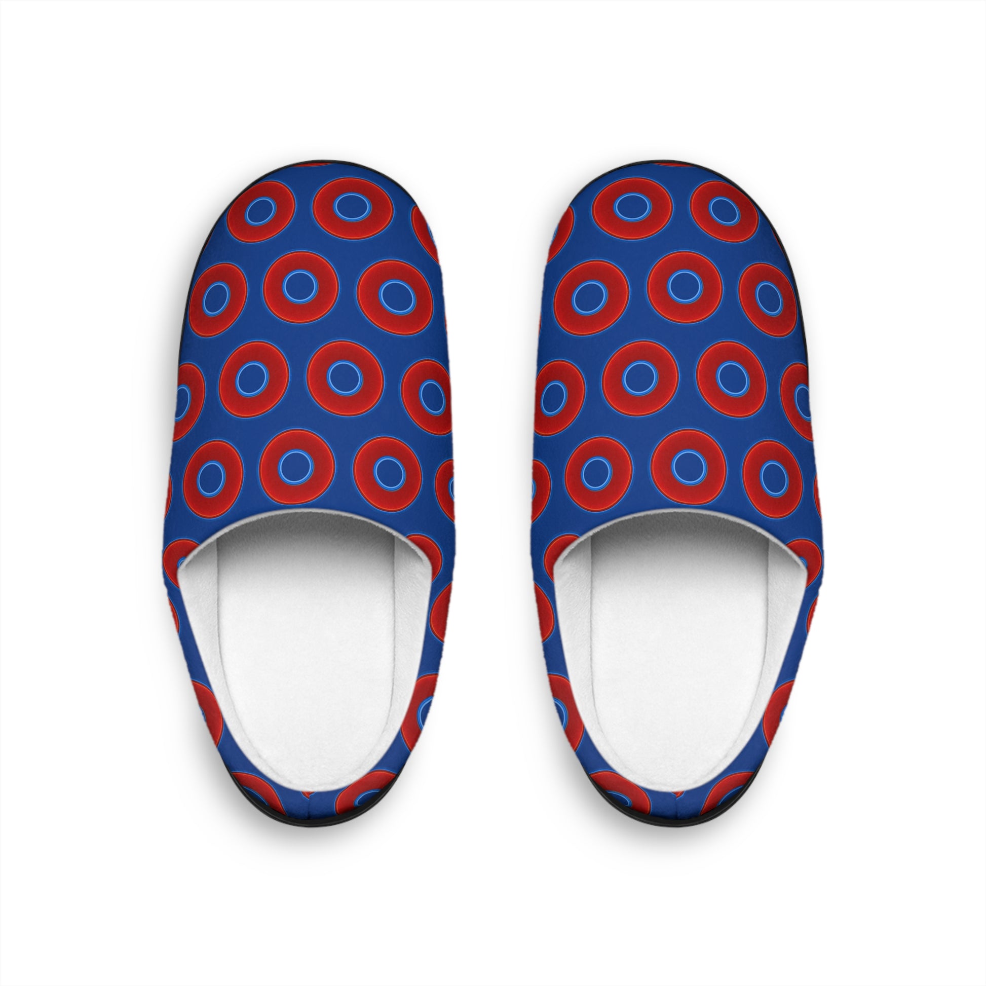 Women's Lumpy Slippers - red vivid donut print w/dark blue background