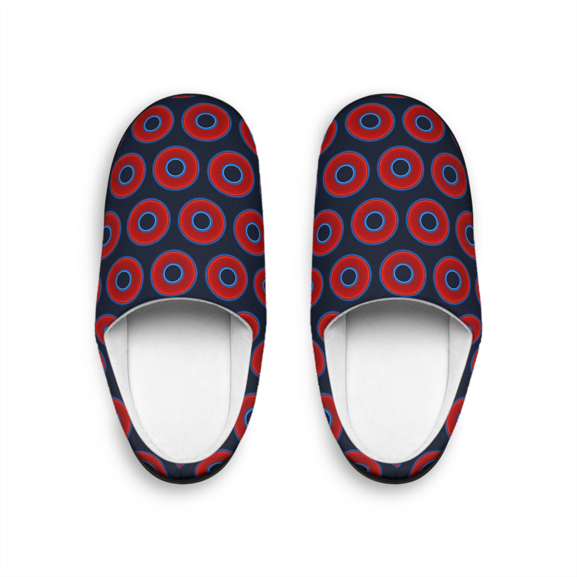 Women's Lumpy Slippers - red vivid donut print w/dark teal elite background