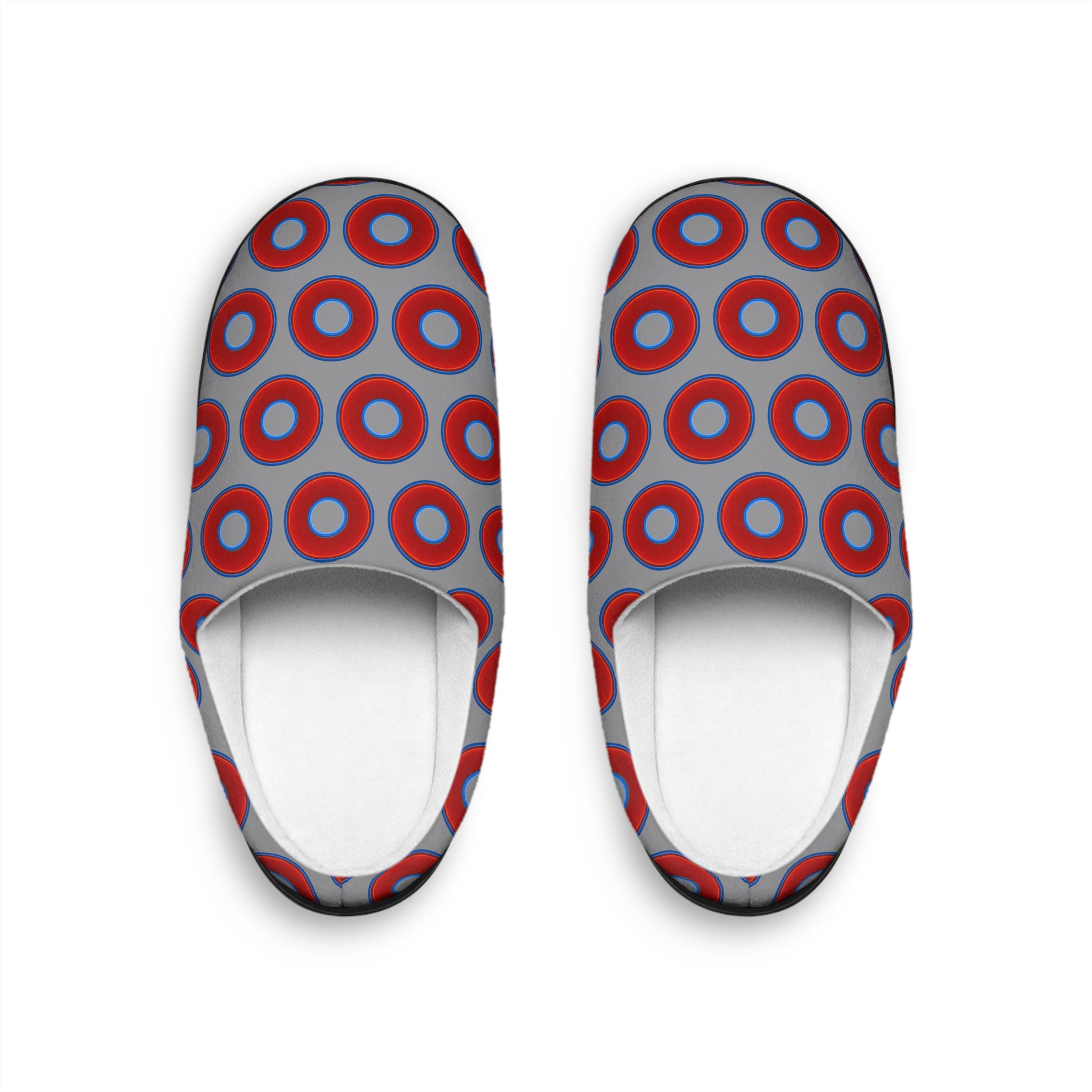 Women's Lumpy Slippers - red vivid donut print w/gray background