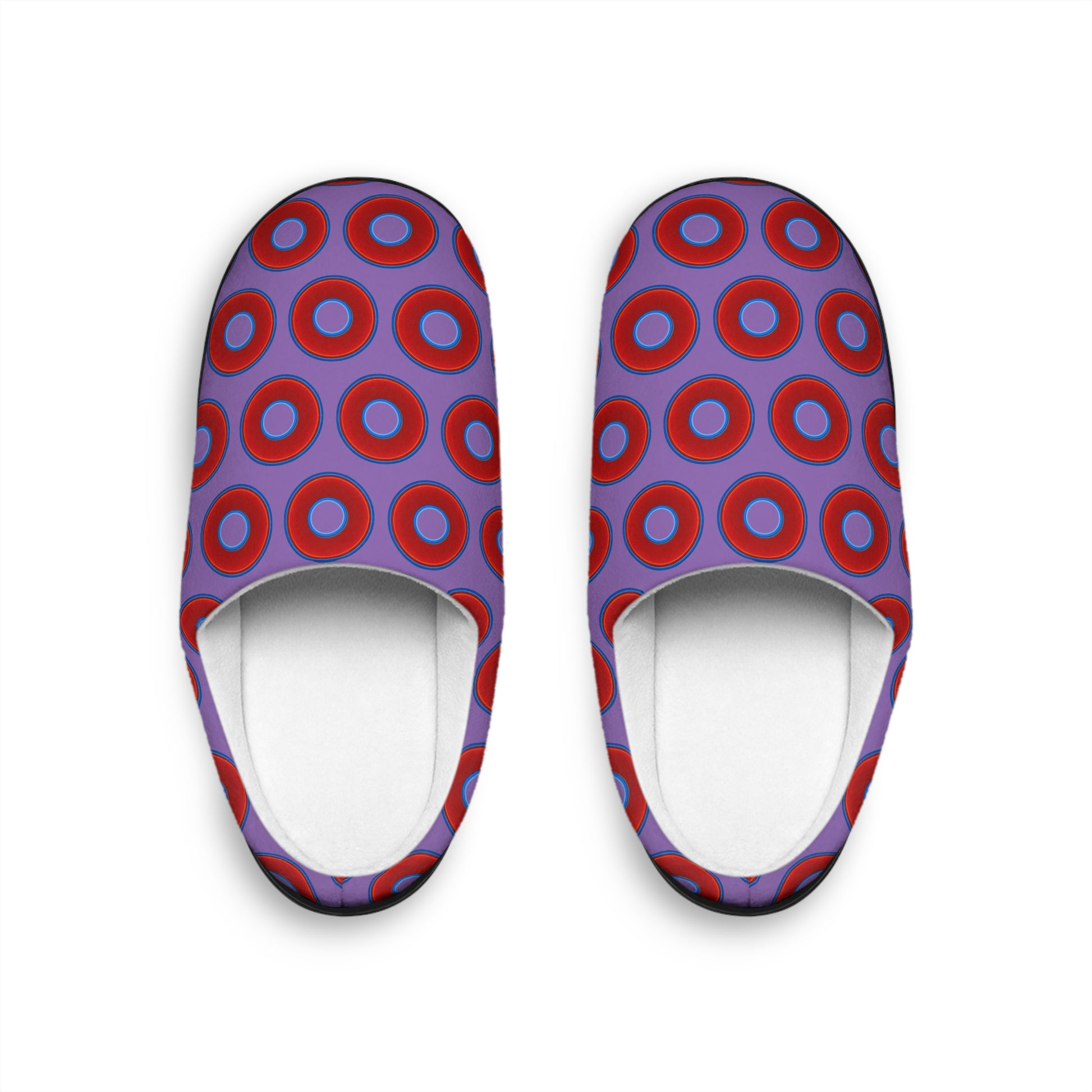 Women's Lumpy Slippers - red vivid donut print w/light purple background