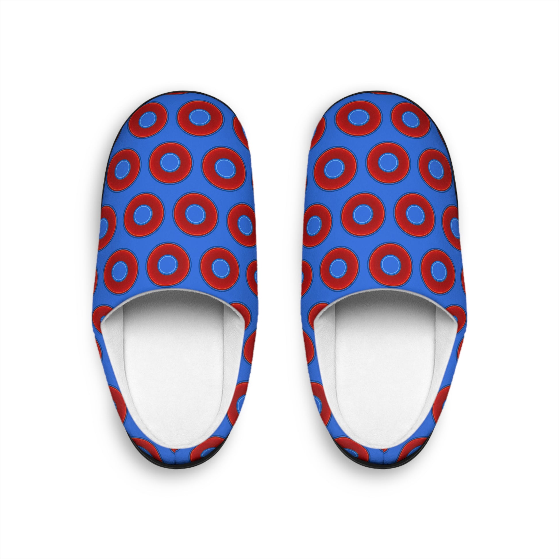Women's Lumpy Slippers - red vivid donut print w/medium royal blue background