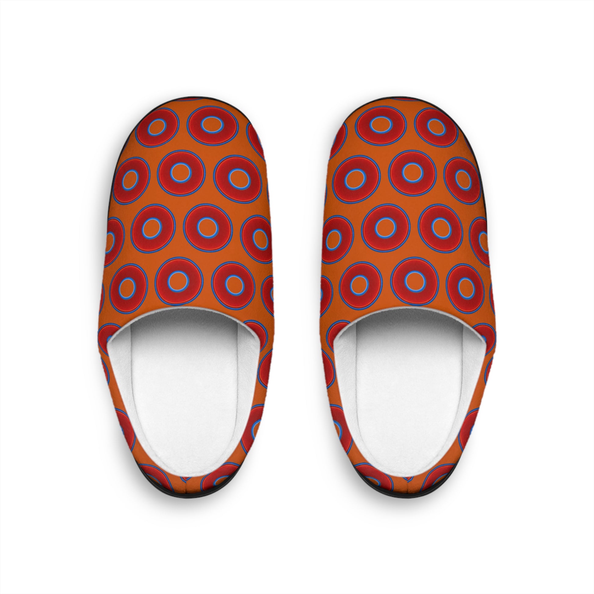 Women's Lumpy Slippers - red vivid donut print w/orange background