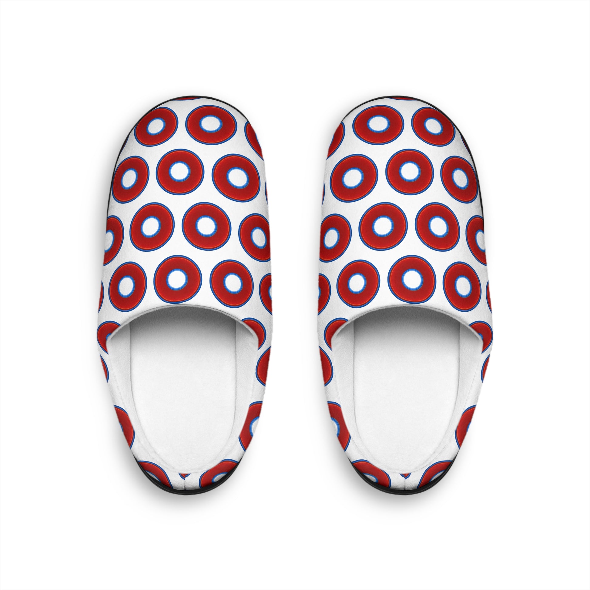 Women's Lumpy Slippers - red vivid donut print w/white background