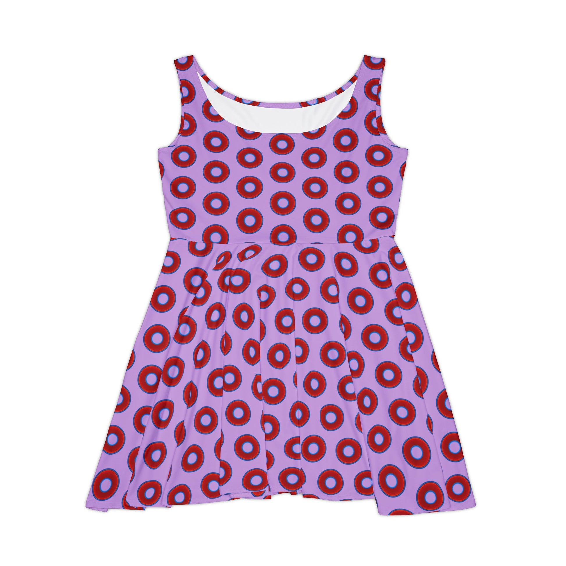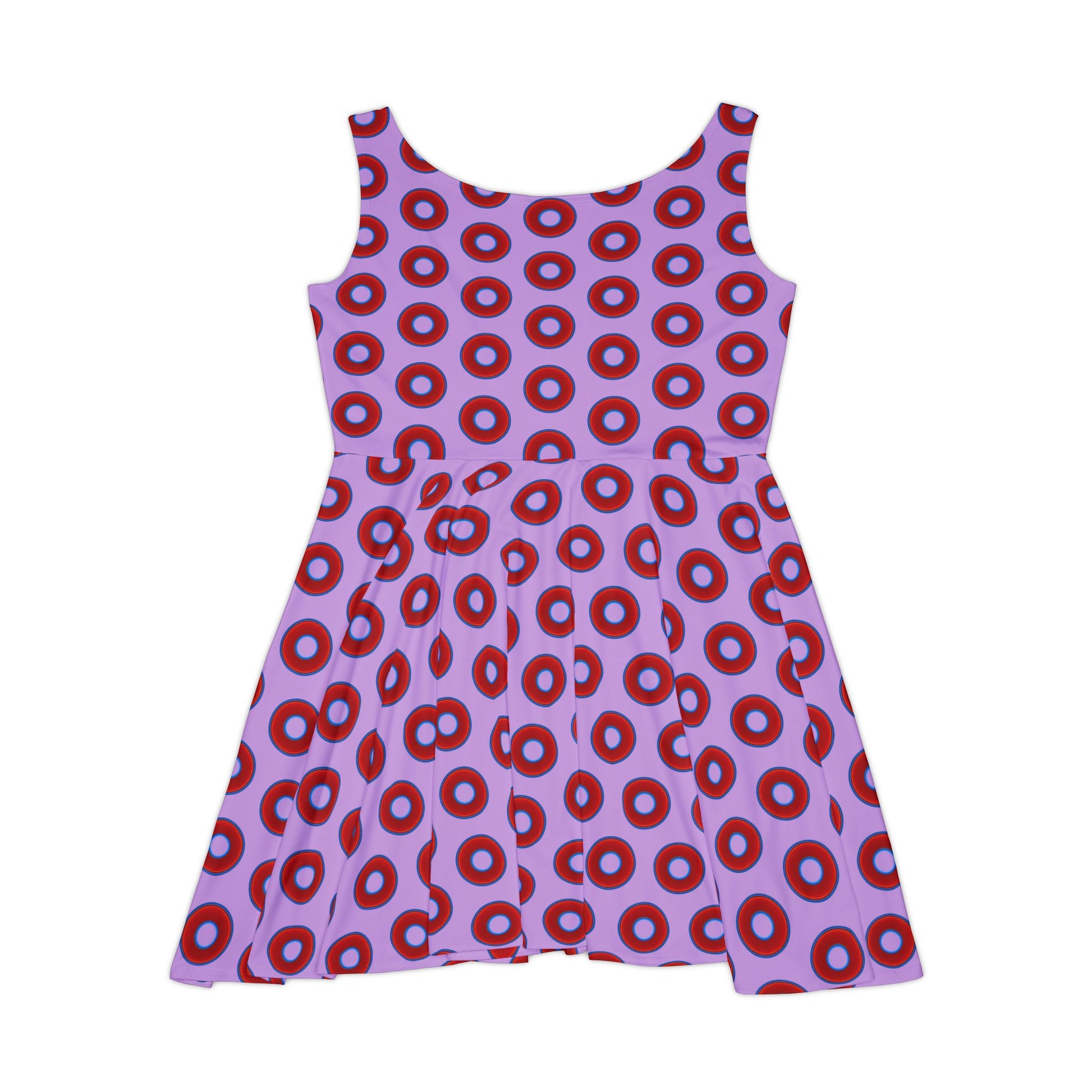 Women's Skater Donut Dress - vivid red donut print w/pale magenta background