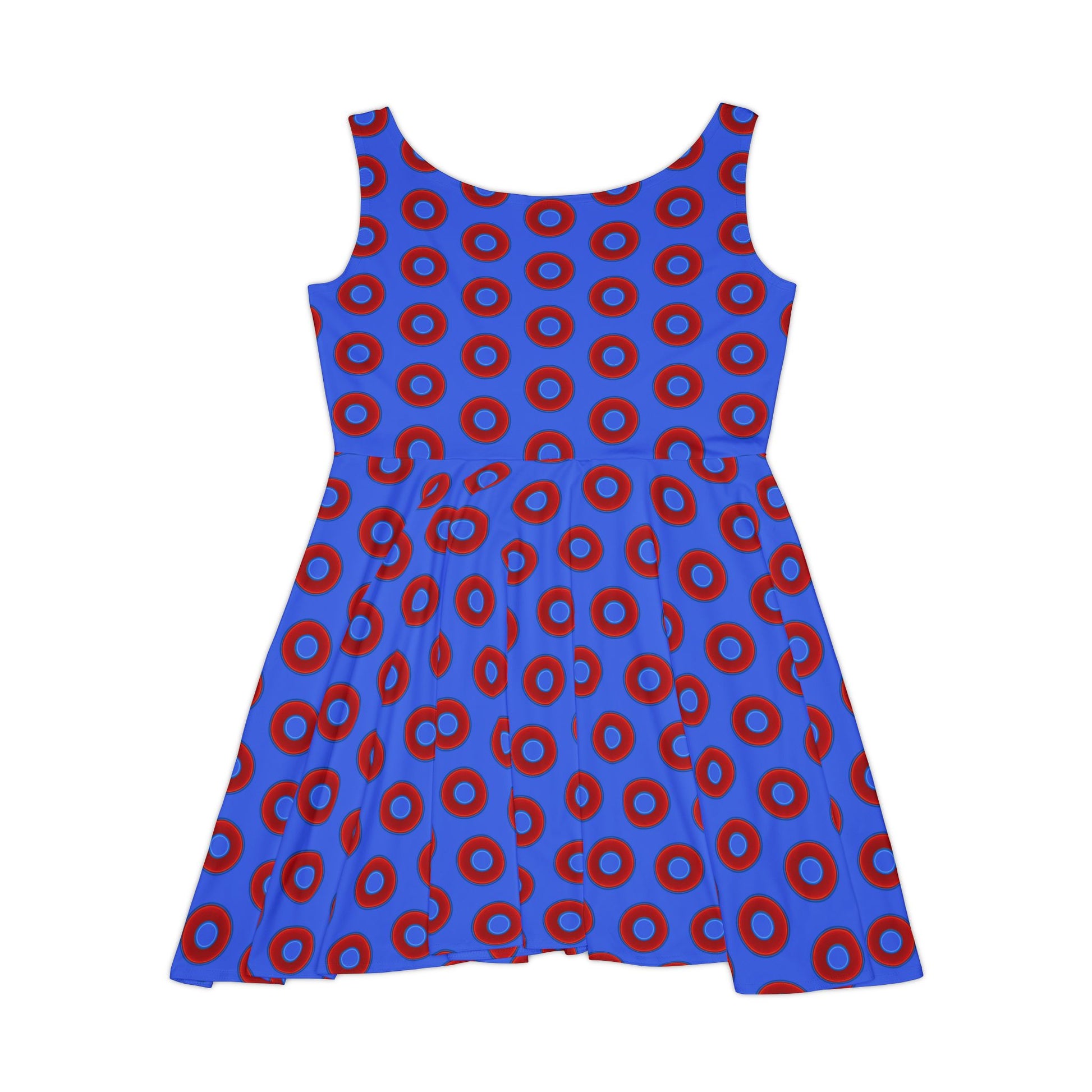 Women's Skater Donut Dress - vivid red donut print w/royal blue background