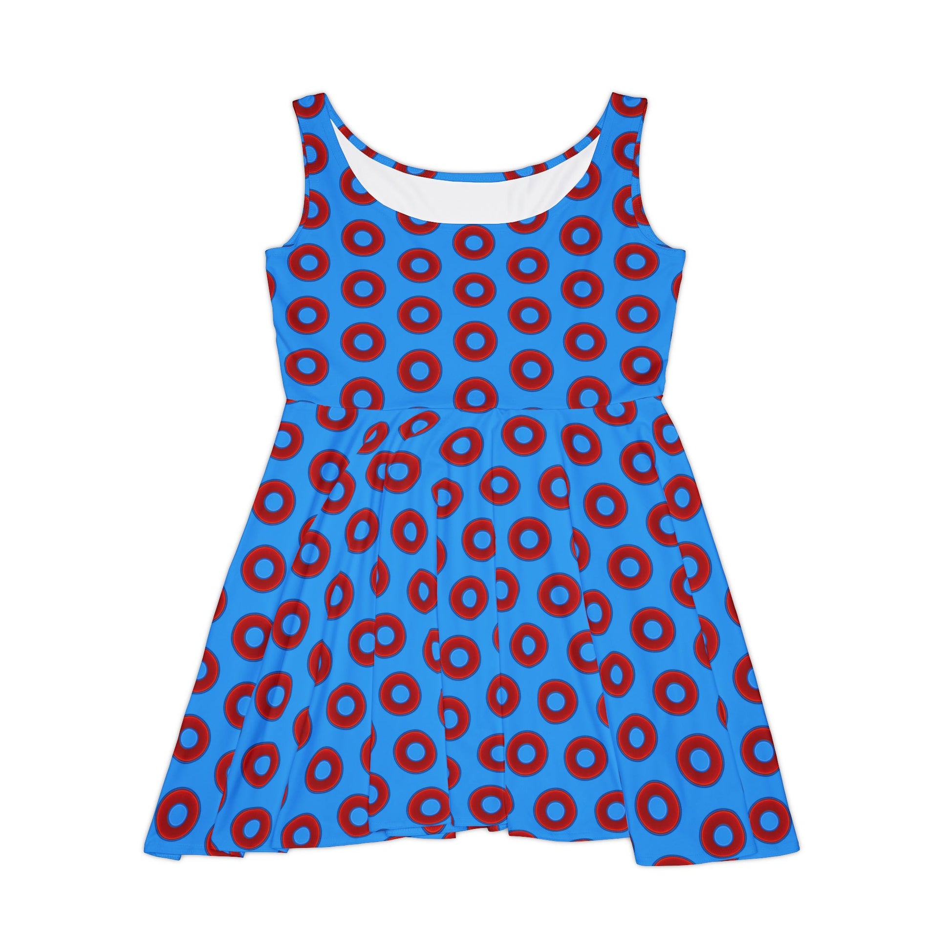 Women's Skater Donut Dress - vivid red donut print w/sky royal blue background