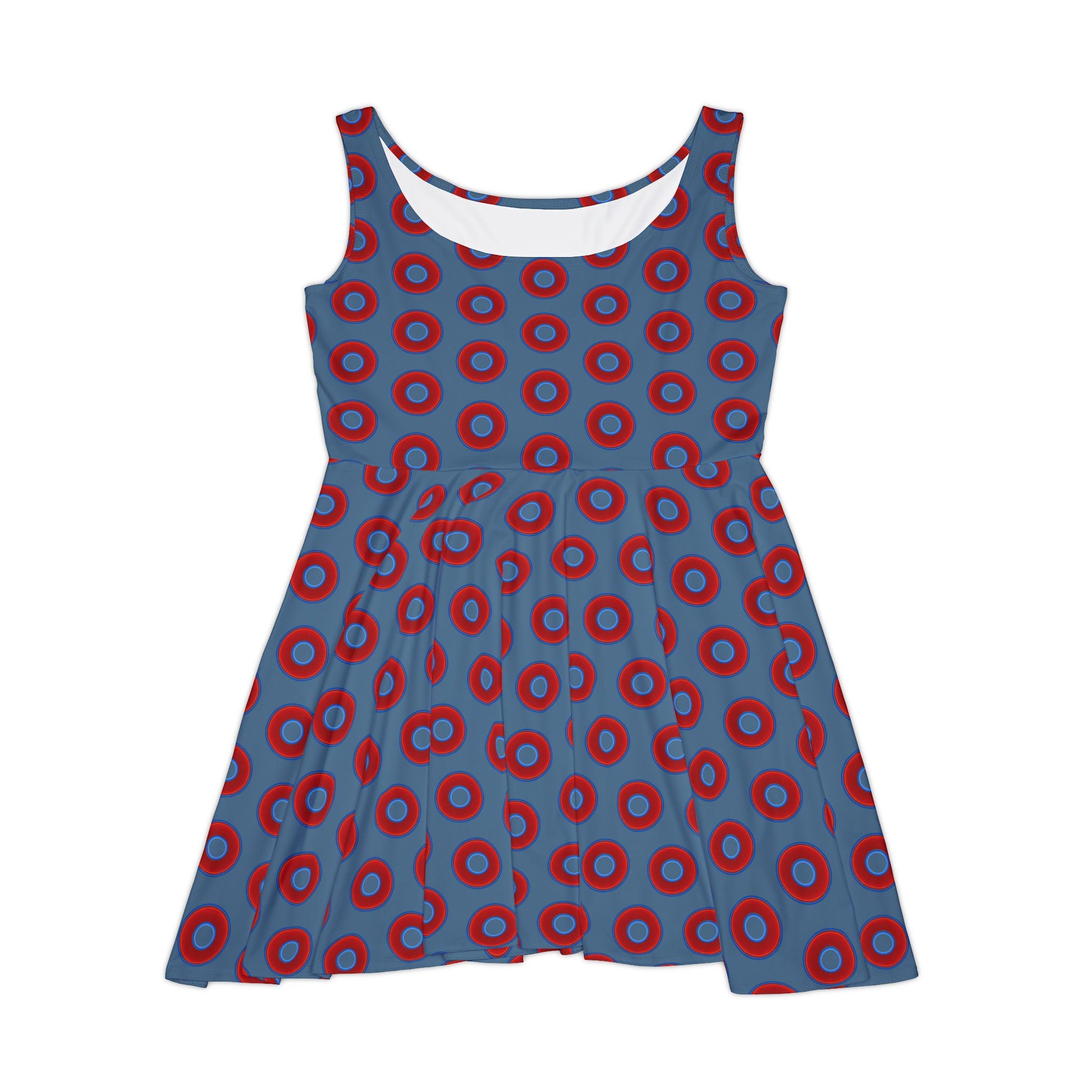 Women's Skater Donut Dress - vivid red donut print w/steel blue background