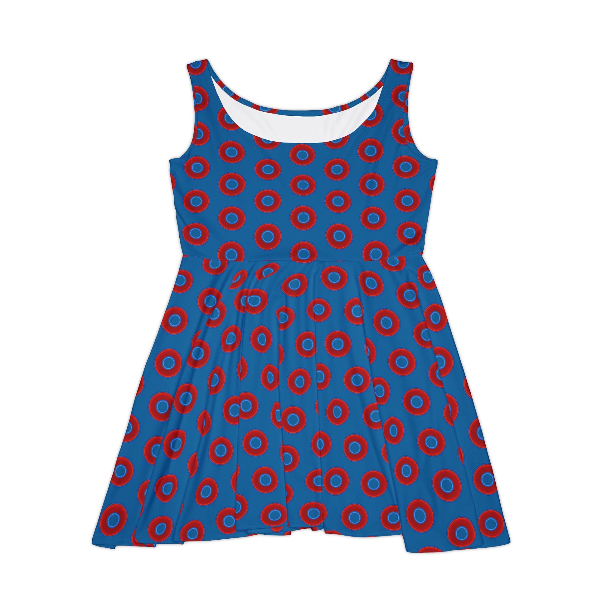 Women's Skater Donut Dress - vivid red donut print w/wavy navy blue background